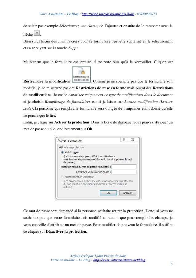 Donc, si vous ne souhaitez pas que votre formulaire soit modifié autrement que pour remplir les champs, je vous conseille d'attribuer un mot.