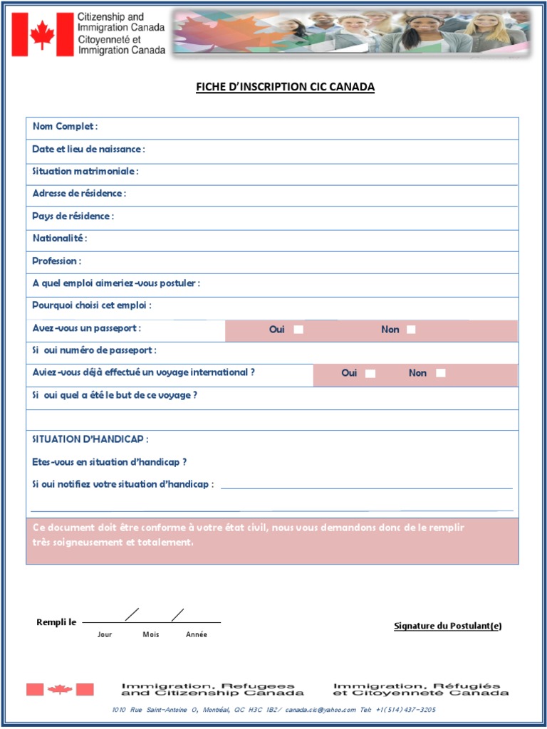 Formulaire À Remplir Pour Immigrer Au Canada. Déclaration pour parent/tuteur légal qui n'accompagne pas un enfant mineur immigrant au canada. Inscrivez sur la feuille de papier en question le numéro exact du formulaire que vous utilisez ainsi que la lettre ou le numéro de la question à laquelle vous répondez.