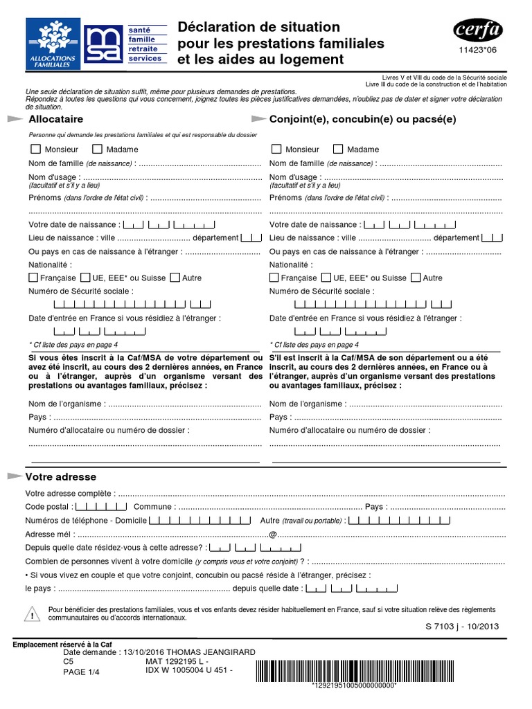 Vous pouvez télécharger et imprimer le formulaire de demande sur caf.fr.