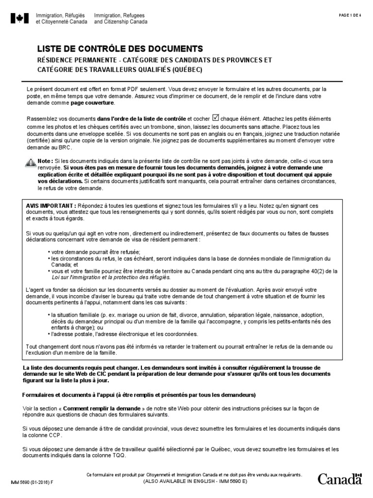 Forme Imm5690 Download Fillable Pdf Or Fill Online Liste De Controle Des Documents Residence Permanente Categorie Des Candidats Des Provinces Et Categorie Des Travailleurs Qualifies Quebec Canada French Templateroller from data.templateroller.com Vous posez vos questions et vous recevez des réponses en si peu de. Gens d'affaires ce formulaire s'adresse aux gestionnaires d'entreprise ou aux propriétaires. Un représentant se fera un plaisir de répondre à vos interrogations ou vous apportez tout le support qu'il vous faut pour que vous puissiez profiter au maximum de nos services.