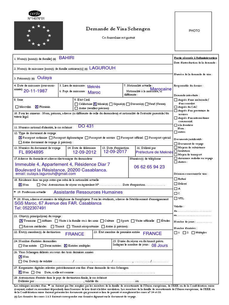 Remplir Le Formulaire De Demande De Visa France En Ligne. 1 généralités vous devez remplir ce formulaire si vous avez l'intention de séjourner en france plus de 90 jours et, notamment, si vous avez l'intention de vous y établir ; Nom, adresse, courriel et n° téléphone en france de l'employeur / de l'établissement d'accueil / du membre de famille invitant,…etc 22.