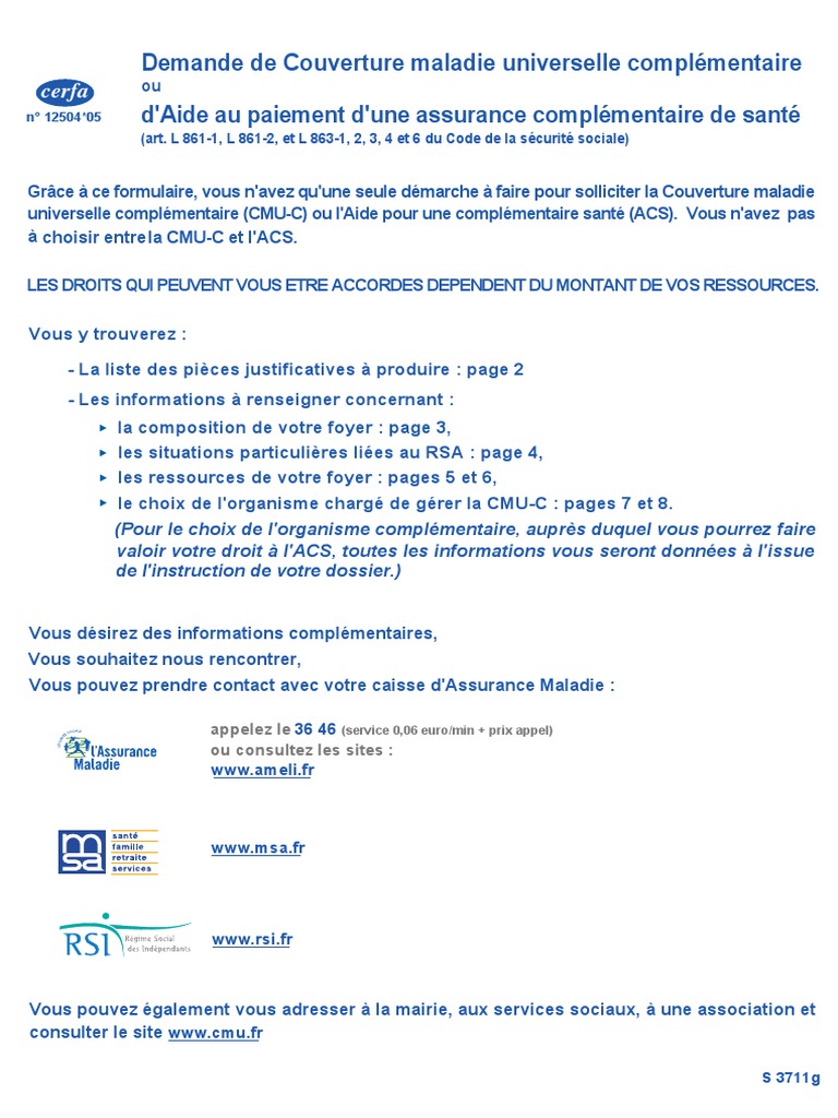 Mise En Place D Outils De Diffusion De L Information Sur L Acs Un Site Internet Et Une Plateforme Telephonique Les Aides Financieres A La Sante from aide-sante.com Vos dépenses de santé sont donc prises en charge à hauteur de 100 % des tarifs de la sécurité sociale. Vous n'avez pas à remplir la déclaration de ressources, il vous suffira de dater et de signer l'encadré réservé à cet effet, mais pensez à compléter la rubrique « choix de votre. S3711i il faudra renseigner votre numéro d'allocataire.