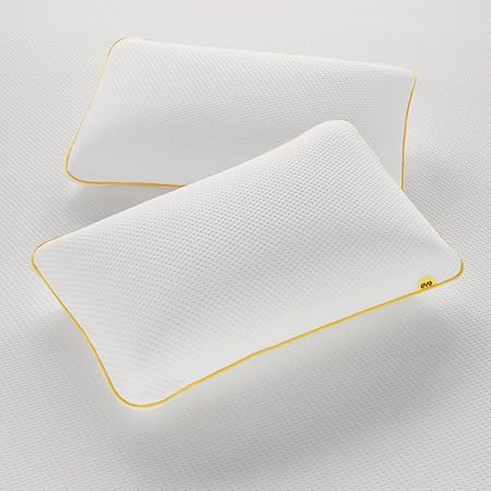 Lintérieur de loreiller Eve se compose de mousse à mémoire de forme. Loreiller Eve peut donc être accompagné dune taie en tissu blanc si vous optez pour la parure de draps également. Le tout est sobre coté esthétique avec du blanc et une petite ligne jaune signature de la marque Eve.